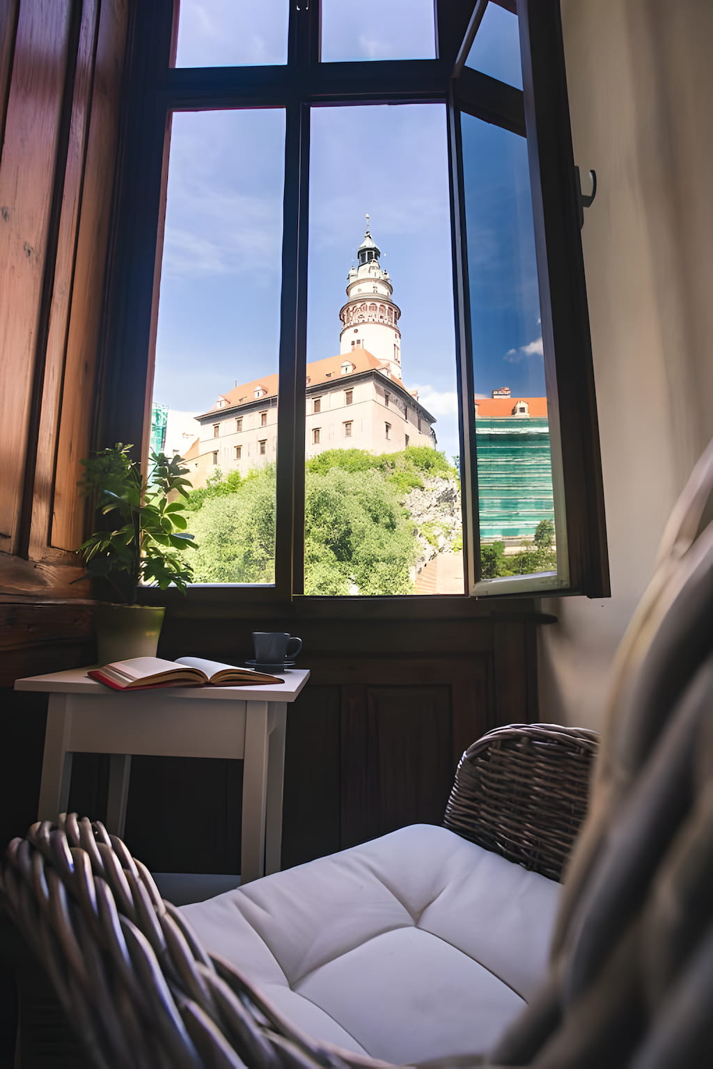 ÚTULNÝ APARTMÁN URČENÝ PRO DVĚ OSOBY JE ORIENTOVANÝ SMĚREM NA ŘEKU A NA ZÁMEK. NACHÁZÍ SE V PRVNÍM PATŘE A MÁ PLNĚ VYBAVENOU KUCHYŇ. VÝSADOU APARTMÁNU JE NÁDHERNÁ ZIMNÍ TERASA S IKONICKÝM VÝHLEDEM NA HRADNÍ KOMPLEX A ZÁMECKOU VĚŽ. TERASA S DECHBEROUCÍM VÝHLEDEM JE JAKO STVOŘENÁ PRO POMALÁ RÁNA NEBO KLIDNÉ, ROMANTICKÉ VEČERY.