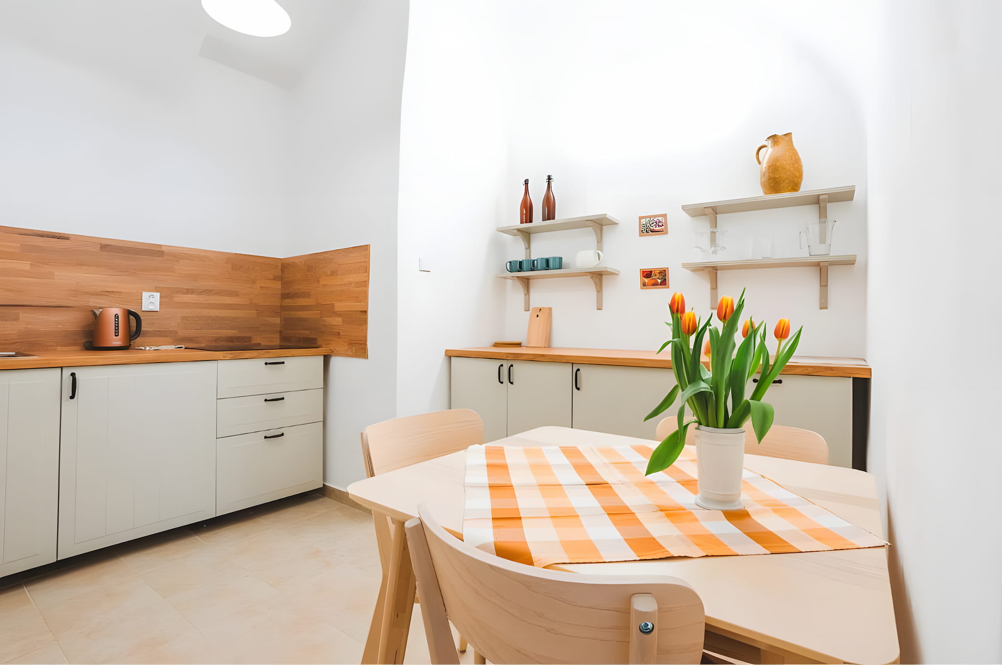 APARTMÁN SE NACHÁZÍ V PRVNÍM PATŘE A NABÍZÍ DOKONALÝ KOMFORT PRO DVĚ OSOBY. JE ORIENTOVANÝ NA ŘEKU A NA ZÁMEK. MÁ PLNĚ VYBAVENOU KUCHYŇ A JE VHODNÝ I PRO DELŠÍ POBYTY. DÍKY JEDINEČNÉ ATMOSFÉŘE APARTMÁNU SI ZDE BUDETE PŘIPADAT JAKO MÍSTNÍ.